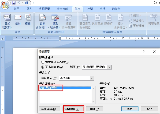 1. 郵件 -> 啟動合併列印 -> 標籤
