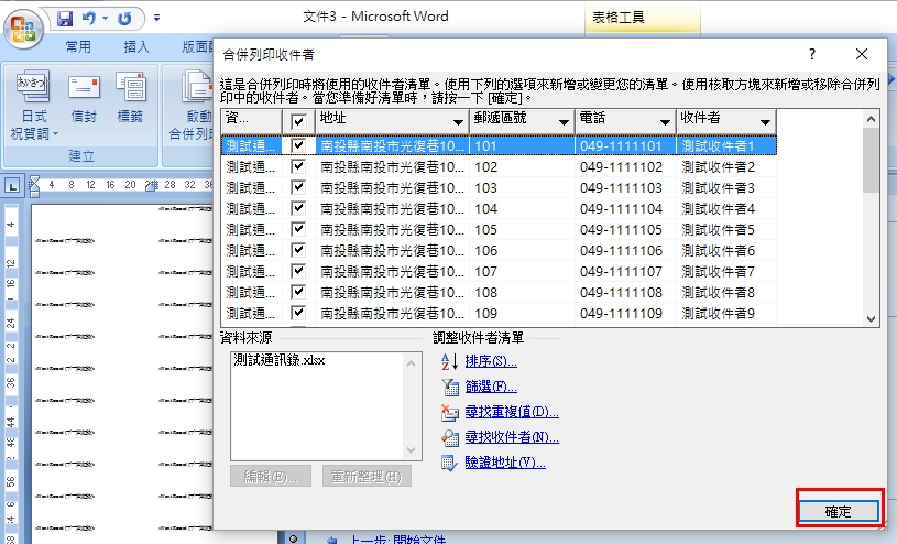 word 的合併列印就是把文件與資料合併成一份文件, 可以用在製作信封、收據、標籤等等,是個很好用的功能。