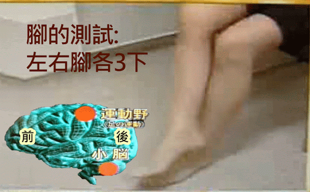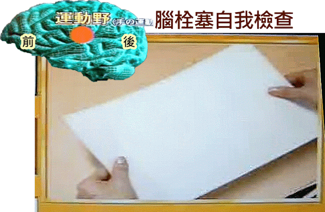 日本節目《生活點子王》曾播出,日本腦神經外科專家大井靜雄傳授,利用手腳,簡單測試,檢測是否有腦栓塞的現象。