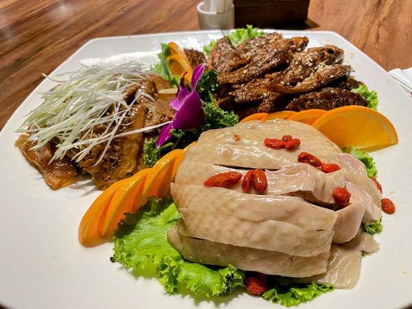 這一次餐敘,桌上滿滿11道佳餚,從第一道「主廚精緻三拼」開始,就像打開一個江南餐桌的縮影。白斬雞肉質滑嫩、皮薄Q彈,帶著淡淡藥香;蔥烤鯽魚細緻入味、鹹香中透著微甜,每一口都嚐得出背後的工夫。