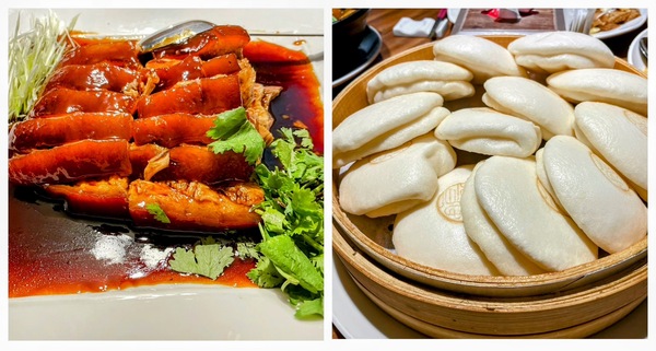 接著登場的「銷魂東坡肉」,更是全場矚目的焦點。五花肉經過慢火燉煮,醬汁濃亮如琥珀,油光閃閃卻不膩口,肥瘦分明、入口即化。配上一旁熱騰騰的荷葉刈包,夾著一塊肉再點綴幾根青蔥、香菜,咬下去瞬間,滿嘴生香,果然名不虛傳,真是好吃極了。