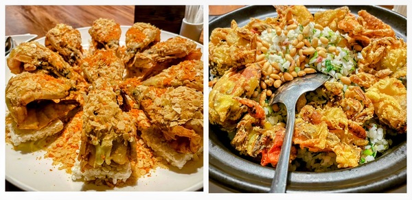 第一次品嚐的「軟殼蟹松子菜飯」同樣精彩,金黃酥炸的軟殼蟹圍繞在飯面,撒上香氣濃郁的松子,與粒粒分明的米飯交融,是一道既有華麗外表又能飽腹的好料理。