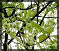 十月,每個送以寶上學的早晨,總能從路的一頭遠遠地就看到結滿纍纍花朵的「黑板樹」,如掛上盞盞綠色圓形的小綠燈,因為花朵是青翠帶白的綠,所以顯得在這一個秋格外的特別。