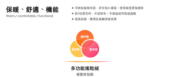 ![]() ![]() ♦2015首選國民平價優質寢飾 ♦搖粒絨材質、不起球、不退色 ♦保暖、柔軟、親膚性高 ♦兩用被套,可當毛毯也可裝入被胎 ♦外宿一族的最愛,寒冷冬日中的小確幸 ![]() ![]() ![]() ![]() ![]() ![]() ![]()