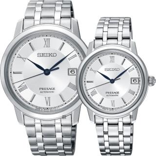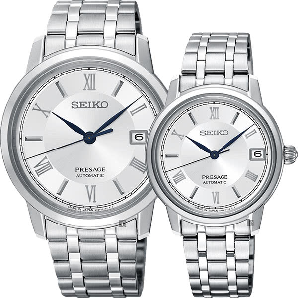小資族最愛-【精工錶】Presage 經典機械對錶-銀(SRPC05J1+SRP857J1)