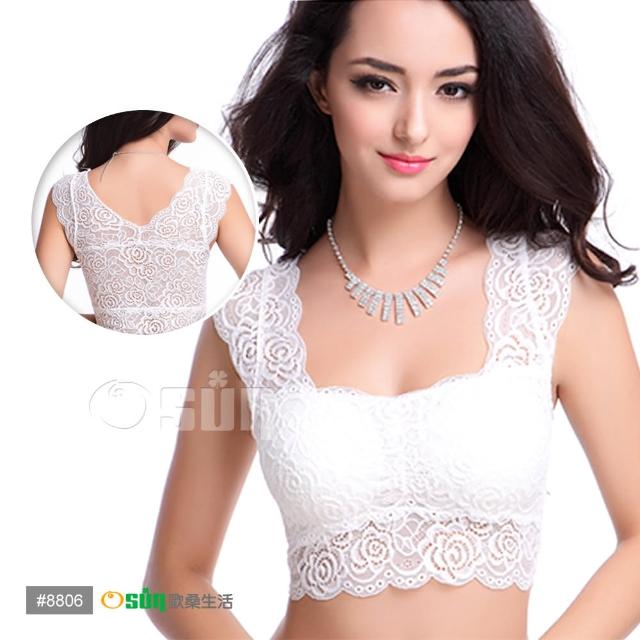 【Osun】蕾絲小可愛背心韓版浪漫玫瑰V背雙肩短版1入附胸墊(黑-白#T8806-CE-176)
