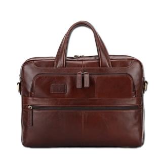 【Sp house】時尚商務男士全真牛皮復古手提電腦包(棕色)