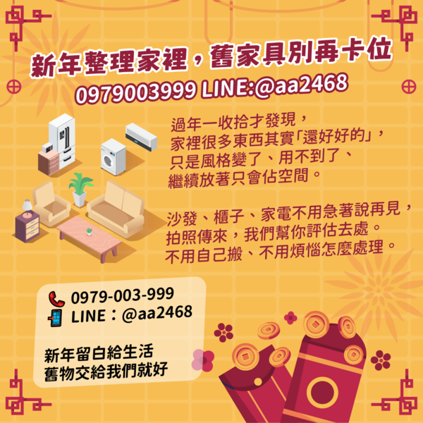 對很多人來說,新年處理家具家電的最大困擾不是捨不得,