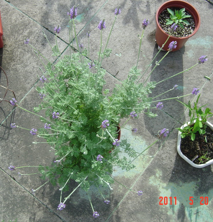 一般的認知中,都是說薰衣草不耐熱、只能活一年,但其實薰衣草是多年生的小灌木,而且還有不少品種都相當的耐熱適應臺灣夏季溫度,只是臺灣夏季多雨(跟原產於地中海地區的夏乾冬雨氣候相反),露天栽種的很容易爛根而導致一路衰敗枯萎。我這株羽葉薰衣草就是因為我習慣性地不搬動盆栽避雨,所以在去年夏天一次颱風連日雨後掛掉了。(不過一般一兩天的雨倒沒影響)
