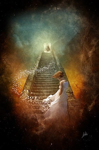 大樓鋼筋已經架到約十二層樓高,小曼攀著鋼筋向上,工人們跟著在後往上攀。攀到了第十層,小曼發現靠邊站了個女子,身上有紅光,便用垂吊下的兩根粗繩盪到女子身邊。