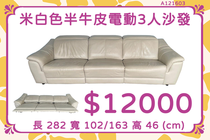 3. 米白色半牛皮電動3人沙發 特價$12000