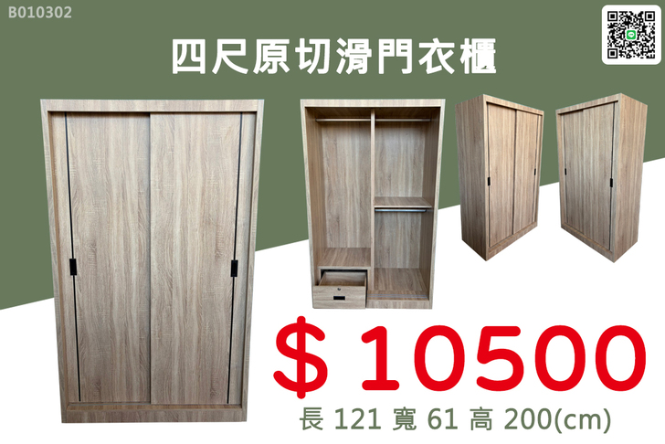 8. 四尺原切滑門衣櫃 特價$10500