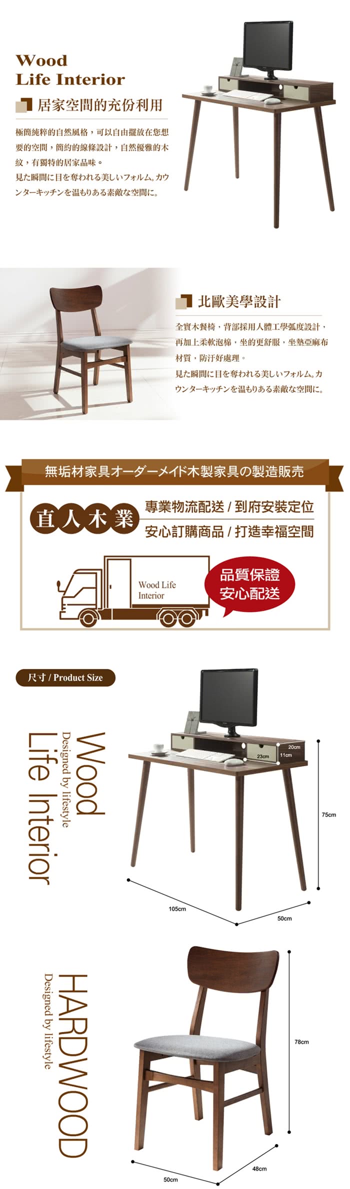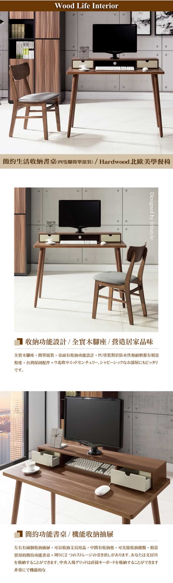 傢俱板【直人木業】簡約生活收納書桌--3分鐘簡單組立四隻腳-搭Hardwood北歐美學實木單椅推薦文