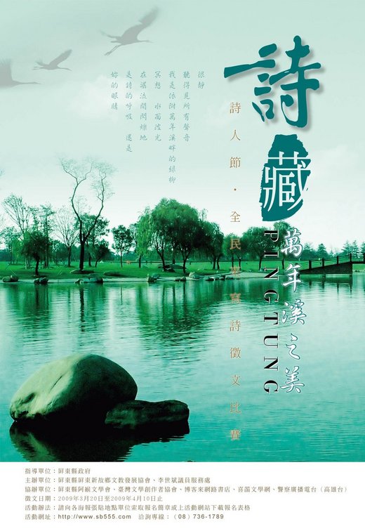 活動主旨:用詩文創意為萬年溪風貌注入新生命的活水,藉以鼓勵屏東縣民寫作生活化