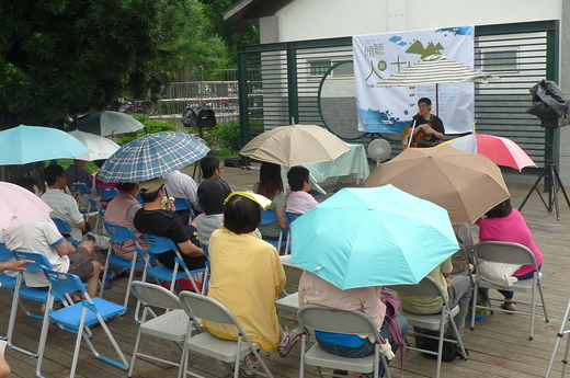 最嚴重的是,天空最初飄下細雨,但雨後來愈下愈大,已有抵擋不了的趨勢。只見生祥在雨中微笑彈唱,聽眾原本撐著雨傘聽歌,最後只好移往旁邊的唐榮堂,繼續聆聽生祥未完的演講及歌聲。