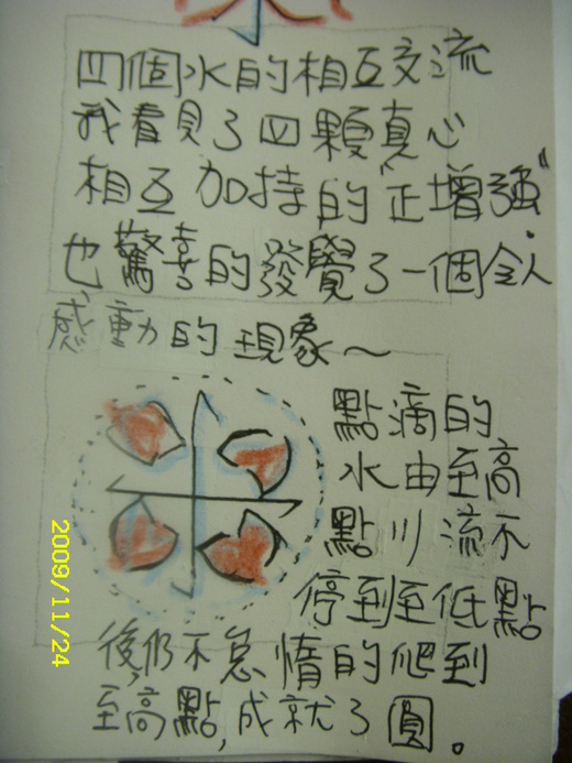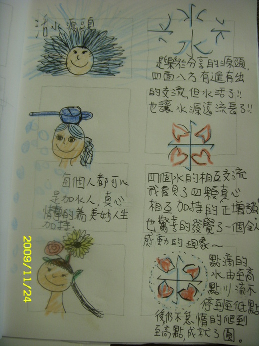 Although water continuously changes states from solid to liquid to gas, the amount of water on Earth remains constant. I should be positive and open-minded to welcome unknown possibilities with changeable strategies, richer knowledge, flexible methods, appreciative manners and successive learning.