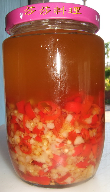切記:罐子要乾不能有水份~因為我們不加防腐劑~乾瓶可保辣油