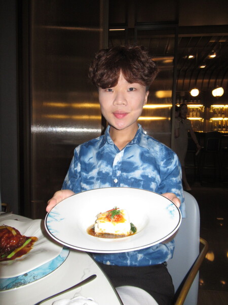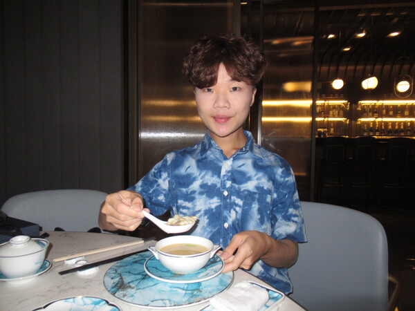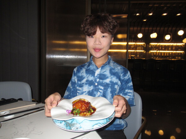 展望高雄一線中餐廳,泰半皆為粵菜,相形之下在餐飲呈現設計,「雋 中餐廳」倒是別開生面;一律採套餐式供餐,並且菜餚送上桌時,搭配侍者專業解說菜餚構思、食材,可謂增添食客品味過程,對料理的理解,也大幅提升用餐風味,也令這股如同法餐般細膩,為本地市場帶來全新氣象,吸引好友Allen時常登門,對於幾款菜色,讚譽有加。就上回海陸食材並陳的套餐中,不僅有懷舊粵菜,也因地制宜的將南瓜炒新竹米粉,藉由粵式烹調手法於餐桌旁,透過文火煎至酥脆焦香,令口感豐富無比。至於套餐中令我留下深刻印象的菜色尚有:毫不油膩的窩貼蝦多士、醇馥鮮美的笋乾菜膽燉魚翅,以及濃郁惹味帶有椒氣的金沙麻辣軟殼龍蝦。