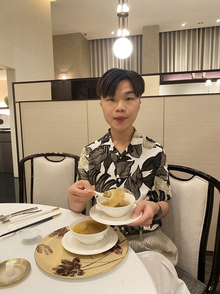 相比以往在台北遠東享用由名庖張浪然師傅(舊文請點我),所製作將魚骨煎香,再與魚腹入鍋熬製,湯頭呈乳白色澤後,再加入鮑魚增添口感,嚐來雋永鮮香的魚湯原粒鮮鮑炸飯糰後;湛露的絲瓜斑片魚濃湯走得是樸實清新風格,儘管並未以矜貴食材入湯,僅由絲瓜及菌菇為輔,但湯頭醇順且毫無腥味,入口溫度也宜人適中,表現不惶多讓,實屬港都朋友領味尤佳選擇;至於湛露無論是粵菜港點乃至時令佳餚,向來有口皆碑,論環境也在線,但這幾年總是無緣獲得米其林青睞,朋友們一致認為或許出餐速度、服務細膩略加調整,便指日可待,然而單純就菜品表現,依然是亞灣區值得造訪的中餐廳。