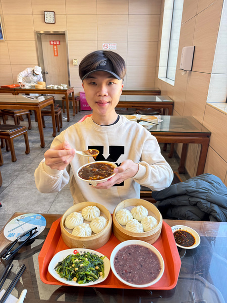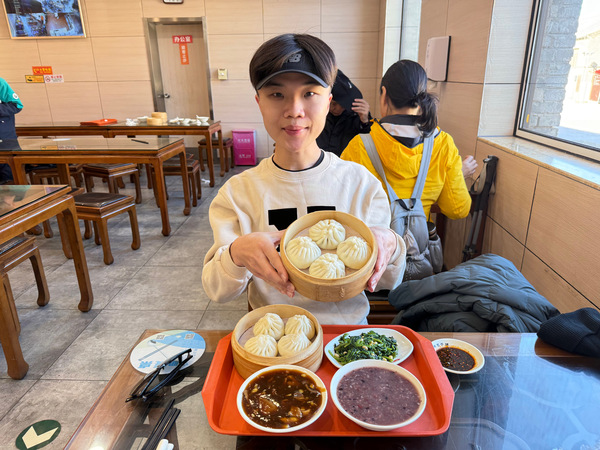 徒步下山除了最省時,也能趕上早已買好,返回市區的高鐵,更能逛逛山腳下的紀念品店、吃個熱騰騰的食物充飢補暖。因此下山後,先是買杯霸王茶姬的伯牙絕弦,犒賞自己一番之外,亦在門市林立北京街頭的慶丰包子舖,享用麵皮蓬鬆柔軟、肉餡濃郁鮮美的精品豬肉大蔥包,以及稠糯鹹香的地道特色:炒肝等菜品後,結束這天八達嶺半日遊,心滿意足、收穫滿溢的乘坐高鐵返回市區。盱衡這趟北平之旅,嚐到的菜色、造訪的餐廳不勝枚舉,就早餐部分也接連造訪紫光園、尹三豆汁,甚至也發現以往造訪的澳門瑪嘉烈,擴點至CBD,對北京朋友來說可謂是一大福音,而當地朋友則認為,倘若名氣響徹的小楊生煎包,能繼南下擴展至深圳後,北上到京城擴點,必然能讓市場多分選擇。