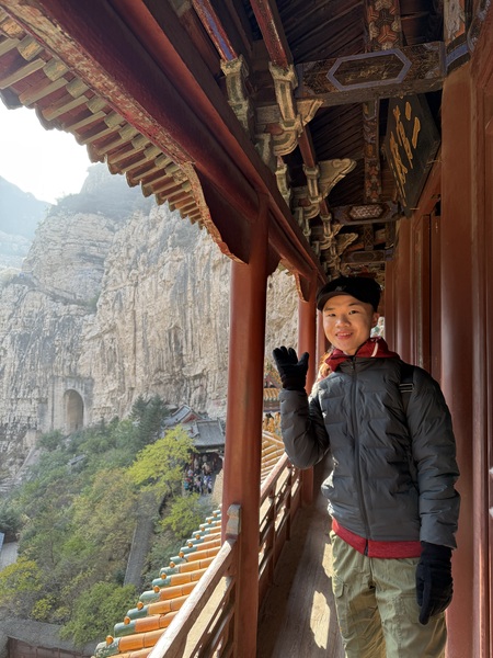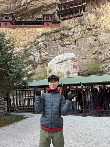 始建於北魏年間的懸空寺,位於大同市渾源縣,距離市中心約一小時車程,是不少旅人來訪大同時,慕名朝聖之處。而其名聲遠播,則因寺廟建於恒山半山腰上,僅僅依靠27根木樑支撐起,部分透過榫卯結構固定,便讓建築立足萬丈深淵的陡峭山壁,迄今已有1500多年歷史,在此期間亦被評選為世界十大驚險建築;至於旅人來訪,登上這座距離地面,最高約九十公尺的傳奇古剎前,首先印入眼簾是,唐代詩仙李白,在開源年間遊覽時,於石崖上留下其內心對建築驚嘆的壯觀二字,亦說明寺廟的奇、懸、巧特點。依據紀載,懸空寺建立在山壁,除了是早年當地洪水威脅,因此有避災之寄託,還有修行之用,所以懸空寺內,也設有佛道儒三教的神殿,相當罕見,也體現文化包容性。