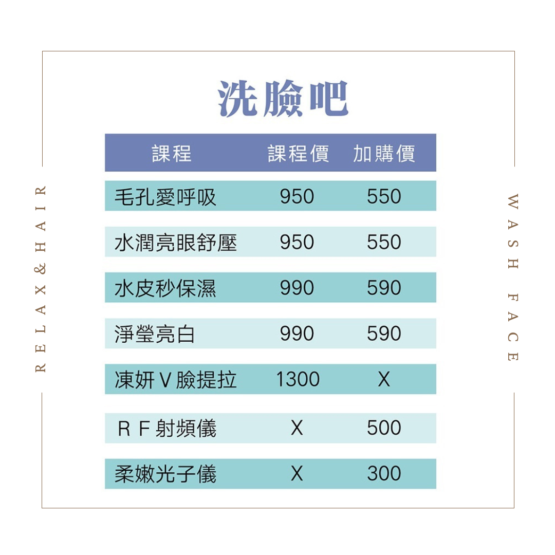 洗臉吧:以臉部保養為主,最推薦就是毛孔愛呼吸只要$950