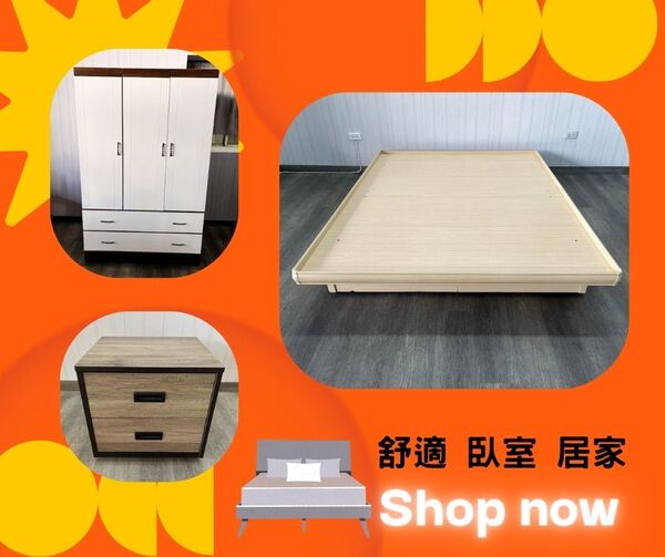 雙人床、單人床、床頭櫃、衣櫃、五斗櫃、化妝台、床墊