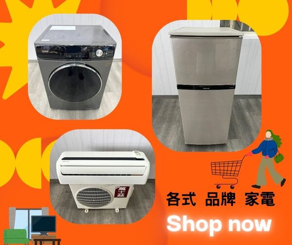 冰箱、洗衣機、冷氣、微波爐、電視、電風扇