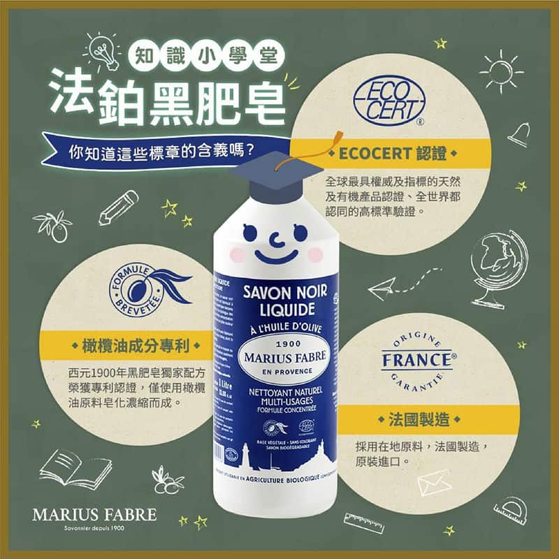剛收到法鉑橄欖油黑肥皂時,第一眼被它乾淨又簡約的瓶身吸引,上頭清楚標示成分資料,不含溶劑、無色素,讓人一看就安心。這款清潔劑源自法國百年品牌,通過ECOCERT天然有機認證,用的全是植物油,標榜天然不含人工香精,使用起來只有淡淡的橄欖油香,完全沒有刺鼻的化學味,真是為家中有小孩和毛孩的家庭量身打造。