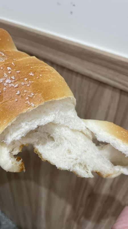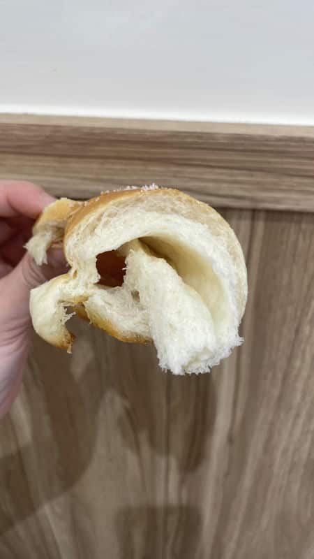 此外,晴天菓子不僅有鹽可頌,他們的日式菓子麵包也是不容錯過的選擇。採用自家培養的天然酵母,讓麵包的口感更加Q彈細緻,吃起來層次感十足,非常適合作為家庭伴手禮或自用。