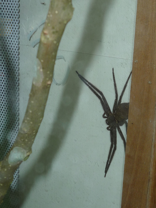 這是上次和爺爺在木柵動物園昆蟲館,進去時所看到的,那時因為比較早,所以沒什麼人,其中我看到其中一個幼蟲展出玻璃裡沒有半隻幼蟲,卻發現裡面有一隻大蜘蛛!在角落,而有位工人員從我身旁經過,我告訴他裡面有蜘蛛,他卻理都不理。