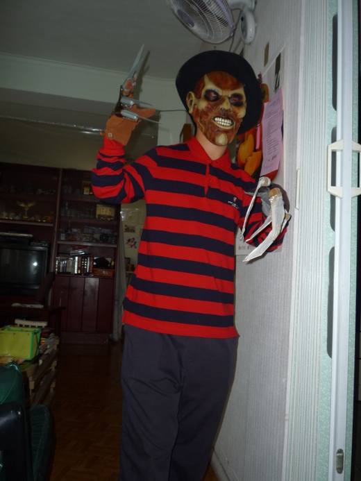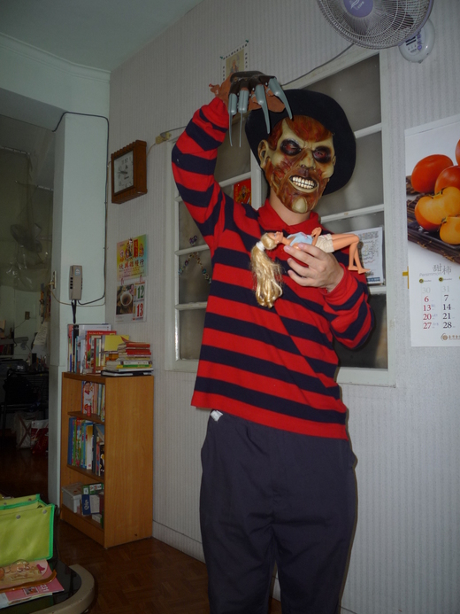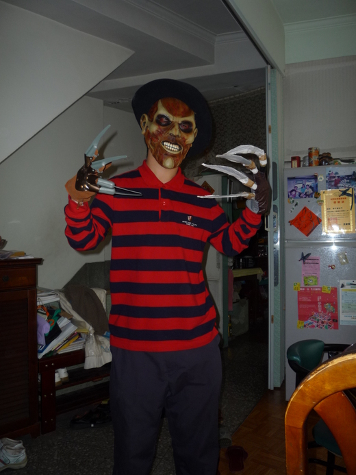 這是我辦成佛萊迪的照片,很酷吧左手一支爪子手是我做的,很帥吧!