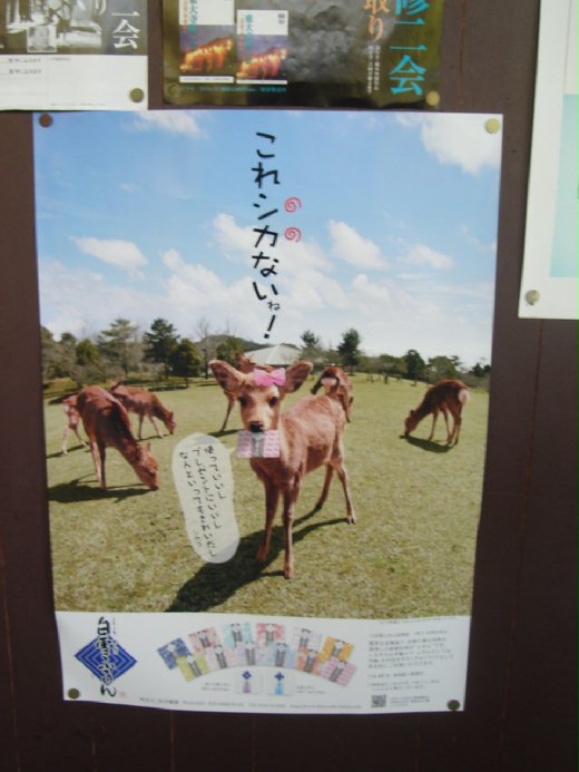 後來奔到了奈良梅花鹿公園,這裡嘛~風景優美氣氛佳,適合我們這團裡的新婚夫妻們來漫步,至於我們幾個單身女子,當然只能梅花鹿們培養一下感情。嘖嘖.這裡的鹿還不是普通的多咧~真是嚇壞我了,一個不小心就會被鹿包圍,哎~講真的,好不容易來日本了,我比較希望是金城武來包圍我啊..