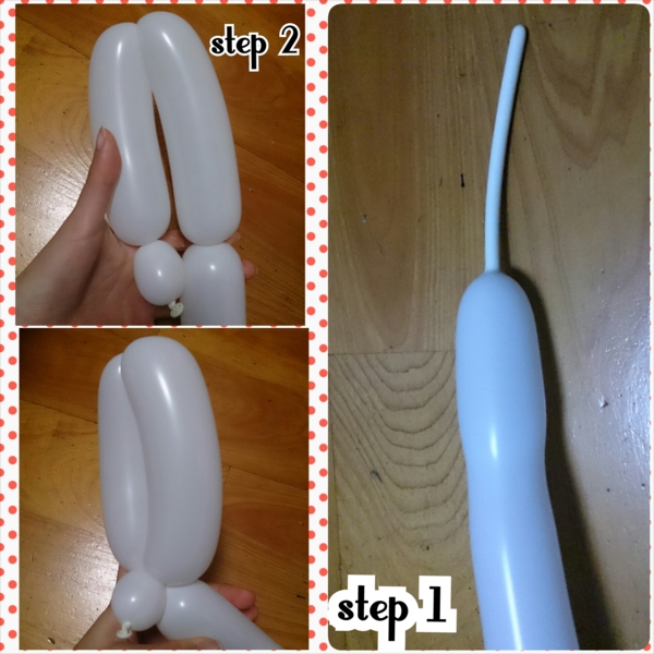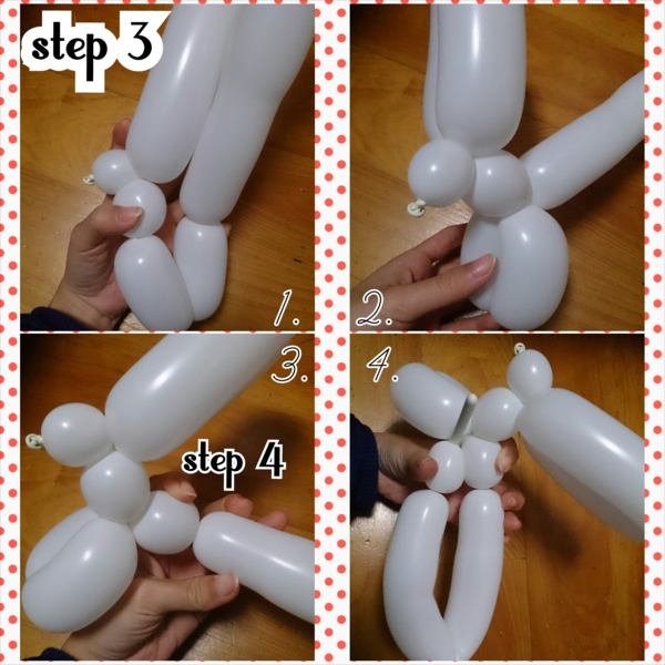 步驟5:環狀的部份就是後腳,最後將前腳卡進後腳的環內,小白兔就大功告成囉!!