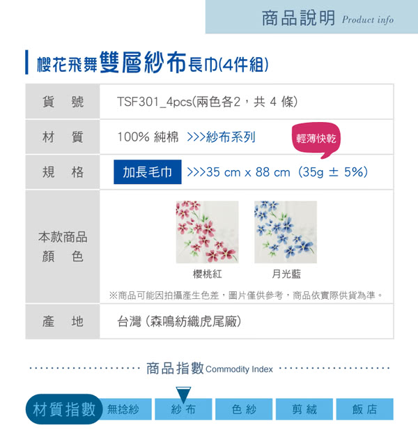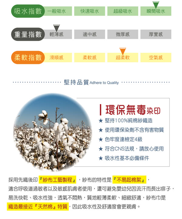 - 紗布的高細緻、柔軟輕盈手感