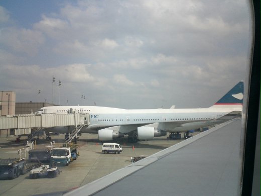 我怎看不到你!! 好吧!我去找人問...阿...怎在機場工作的小姐還不懂英文(原來我問到國內線的), 你不要對我一直笑拉, 我知道你笑起來很美.....我在找找...看到詢問台了, 我也走不動了, 用我破破的英文跟美美的服務小姐說我要找照片上那對美女與野獸(我親愛的說的..哈!),對就是這個長的漂漂的台灣美女還有另一個阿本仔, 請我幫叫她們過來, 我在這等她們, 所以有個人就出名了, 他被廣播了!![]()