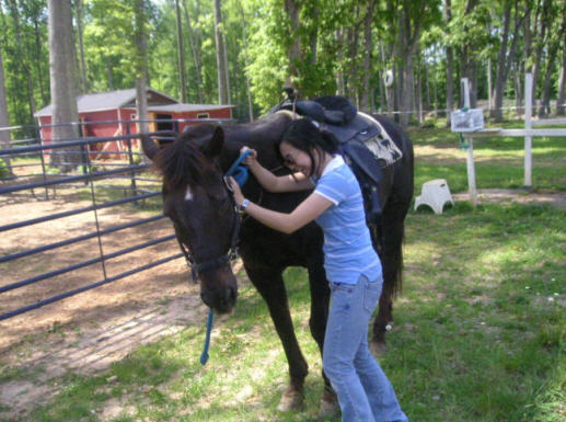 上次跟貝貝MSN的時候,她竟然在我的即時看板裡發現我在農場騎馬,還問了我怎麼樣了… 呵呵…是時候要來敘述一下了。一個多月前,我被邀請去農場參加四歲小女生的生日會才有機緣認識農場夫妻,湯姆和蘇。生日會的時候,還有幾個很有趣的活動像是讓小朋友騎上馬在小圍場裡繞兩圈,還有Hayride (坐在鋪上裝著乾草的卡車由農場),農場有十七公頃,隨便繞一大圈都還有沒有去到的地方,這兩個活動讓小朋友真的是玩瘋了。我呢也有機會騎上馬複習一下那個感覺,更進一步的我就約好了下個星期六到農場去開始我學習騎馬的課程了。