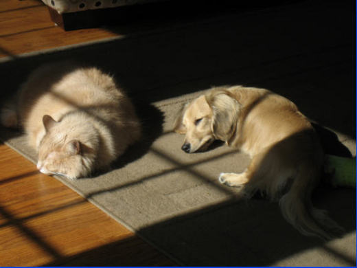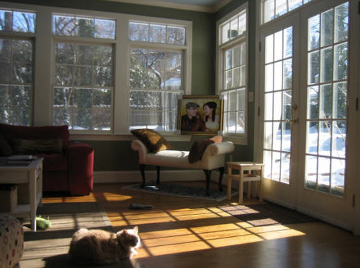 上圖 : 在新家的第一場大雪的早上,伊莉享受著溫暖的陽光。