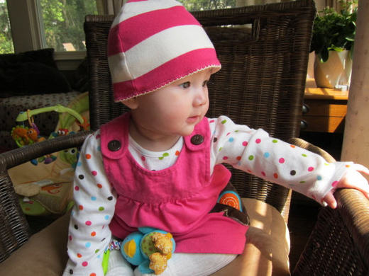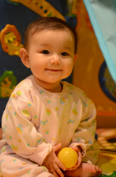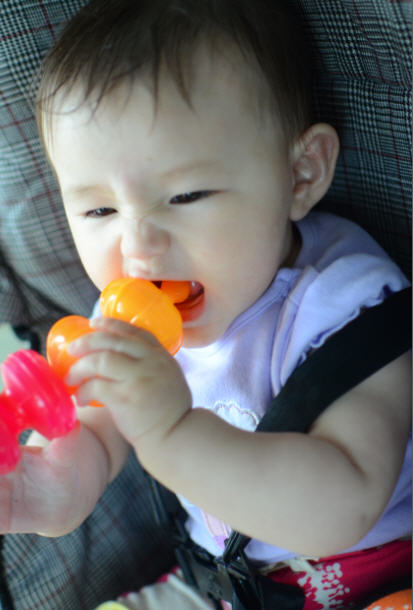 睡眠時間表已經建立的很好,早上七點左右起床(最近有推向6:30am的趨向),八點以前到褓母家,九點小睡,11點半左右睡個長午覺,大概有2-2.5小時,下午三點多在小睡一下,回到家吃完第四餐,在小睡40-60分鐘,玩一會,再吃第五餐,接近九點,就是晚上的睡覺時間了,通常9:00-9:30pm前就會睡著了,這個時間表挺好的,但是沒有辦法睡過夜,上半夜睡得好,下半夜就一直行來要奶嘴,不用夜奶了,卻來個奶嘴壞習慣。每每睡熟了,奶嘴就掉出來了,昏昏沉沉醒來就是哼哼叫的要奶嘴,摸黑找到後,一塞進嘴裡就好了,又倒頭睡去。本來奶嘴只是為了讓小縵可以習慣半夜一點點飢餓的感覺,我最近也累的不想半夜起來抱小孩,最懶的方法就是塞奶嘴,這下子塞出個更大的問題來了,小縵太依賴奶嘴了,我得開始幫她戒奶嘴了。為娘的也是需要休息的,這樣的睡眠,我再撐也沒多久就會病了,全身痠痛,沒有精神,永遠都想睡覺。