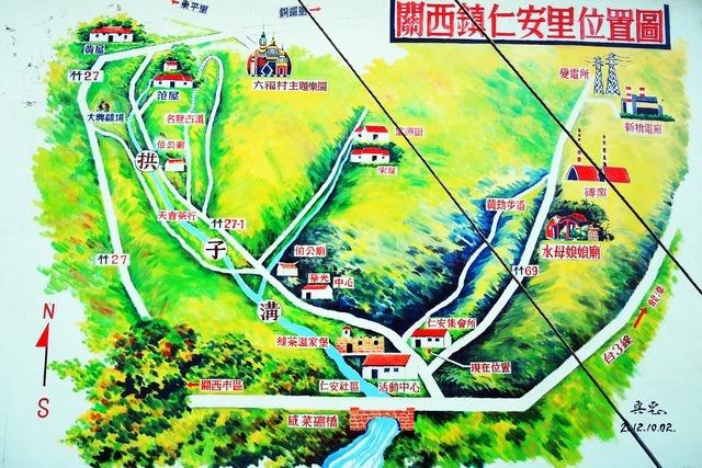 下山的時候,沿著水母娘道路而下,大約只有兩公里。在半山腰,有一個水母娘娘廟,那是仁安里的井水。以前醫藥不發達,這口井水醫治了許多人,很多人開車提了許多水桶來這裡裝水,有當地人,也有從外地專程來的,如楊梅、龍潭等等。我也拿起寶特瓶裝了井水,水一入喉便感受到此神水甘醇清涼,馬上解了一身瘴氣,神清氣爽。