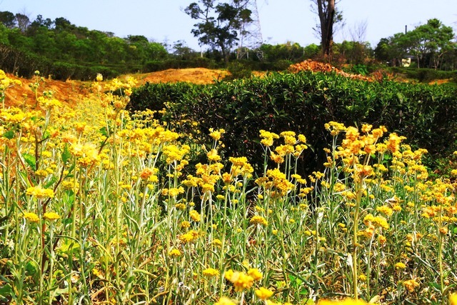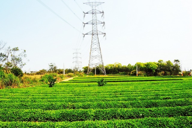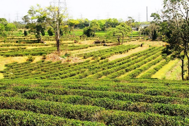 這塊台地別有洞天,感到心曠神怡,這裡多的是高壓鐵塔,茶園主人把這裡整理得相當整齊。茶樹交織羅列,有橫有縱有斜,排成優美的幾何構圖。旁邊產業道路,寬敞舒暢,偶爾還有一些桑葚。草原的盡頭是座小廟久北宮,供奉著哪吒三太子,供品不乏陀螺、玩具車。而廟的存在就代表車子可以到達,也宣告步道的結束。