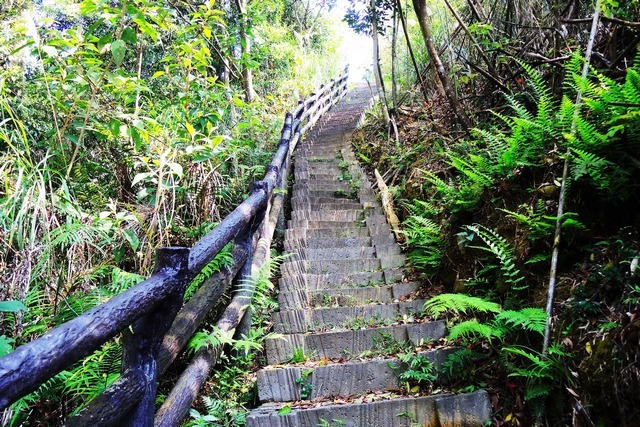 把車停在仁安里集會所旁邊,步行上去。一開始就是連續上坡,走在已經鋪設好的寬敞木梯上面,在草叢中行走,沿途並沒有展望,會先經過一個小涼亭,而小徑的終點是一片茶園。