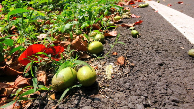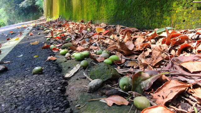 每條公路都有不同的特色,這條路有幾戶人家,經過一戶獨立房子,飄來橄欖香,地上掉滿橄欖果,我不禁想哼唱一首歌: