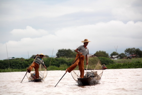 湖上一對漁夫表演特技補魚法:他們會擺出各種姿勢供遊客拍照,非常有趣的兩位漁夫。