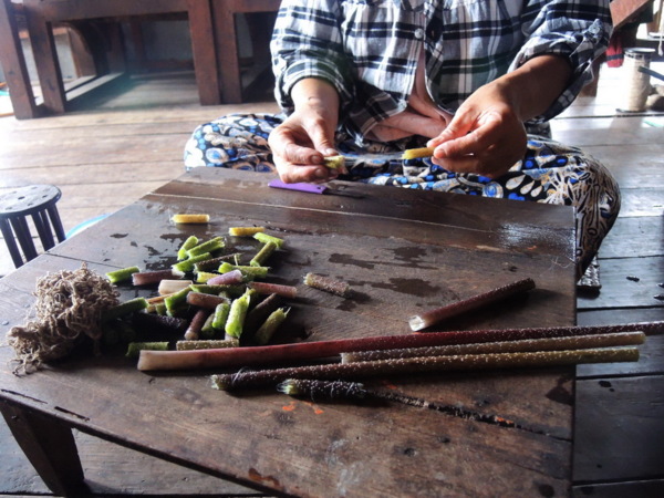 蓮絲編織工作坊:利用蓮莖抽絲來編織布料,製作出來的成品(衣服、圍巾、披肩)很昂貴。