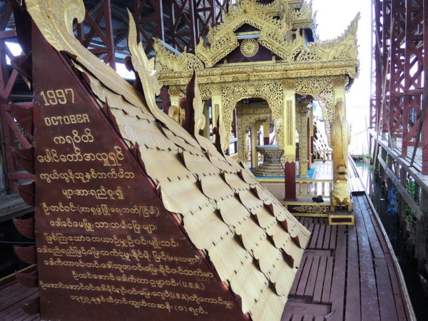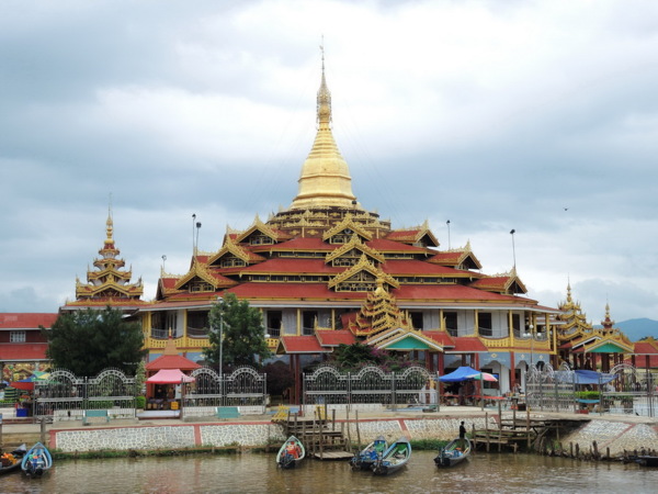 這座佛寺是湖裡面最大的佛寺,也是茵萊湖最重要的寺廟,又是一座塔身金碧輝煌的佛寺。