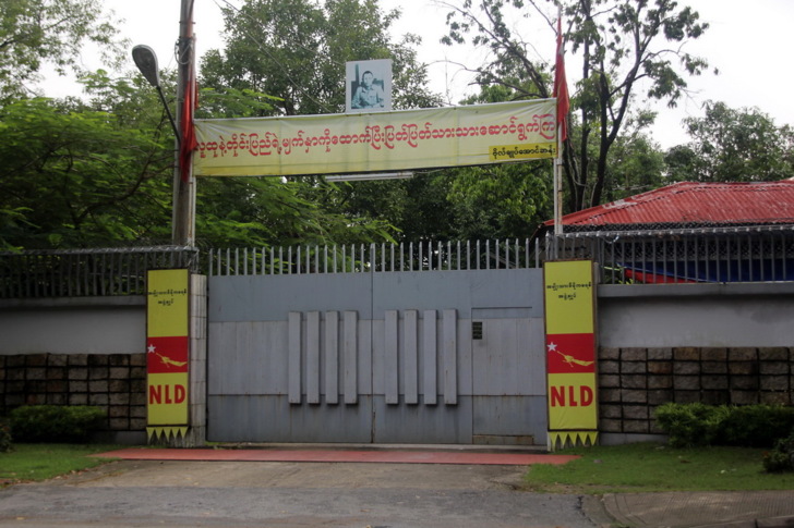 只能看到一道大鐵門,這裡曾是軟禁翁山蘇姬多年的地方,鐵門上掛有翁山將軍的相片。