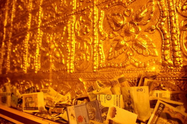 這尊臥佛鑲滿了寶石,而眼睛則是用玻璃製成的。