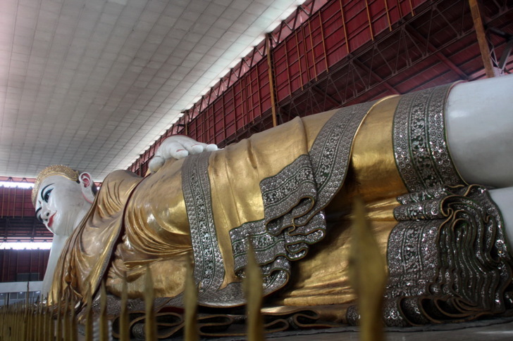 喬達基臥佛寺Chaukhtatkyi意即六層寺 , 內有世界最大的臥佛,長75公尺、高30公尺,