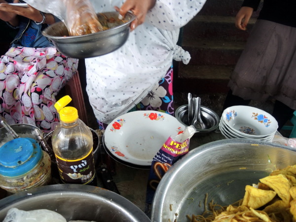 第二碗魚湯粉是在緬甸著名景點大金石吃的,在下山的路上,發現路邊有賣魚湯粉,於是點了一碗來吃。湯頭濃稠度和味道跟澳門一樣,但是還是沒有加入豌豆餅,少了一味,口感當然有差。